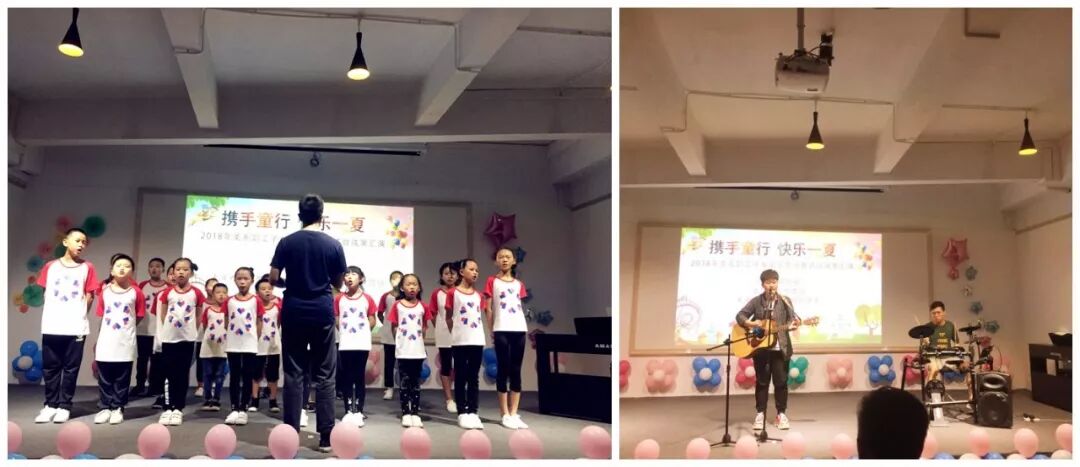 值得一提的是,快连的学生也非常荣幸的参加了这次汇演,演出曲目吉他架子鼓二重奏《乌兰巴托的夜》。音乐专业学生的精彩表演使汇演达到了高潮,成功激发了“小候鸟”们的音乐梦。
